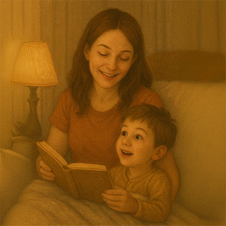 • 3. El Corazón del Ritual: El Cuento: Deja que elija el cuento o sorpréndelo con uno nuevo. Acurrúquense juntos. Tu voz tranquila y la historia los transportarán lejos de las preocupaciones del día.